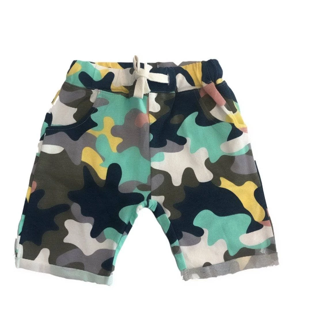 Tropical colored camo print cotton light weight shorts for boys!Β