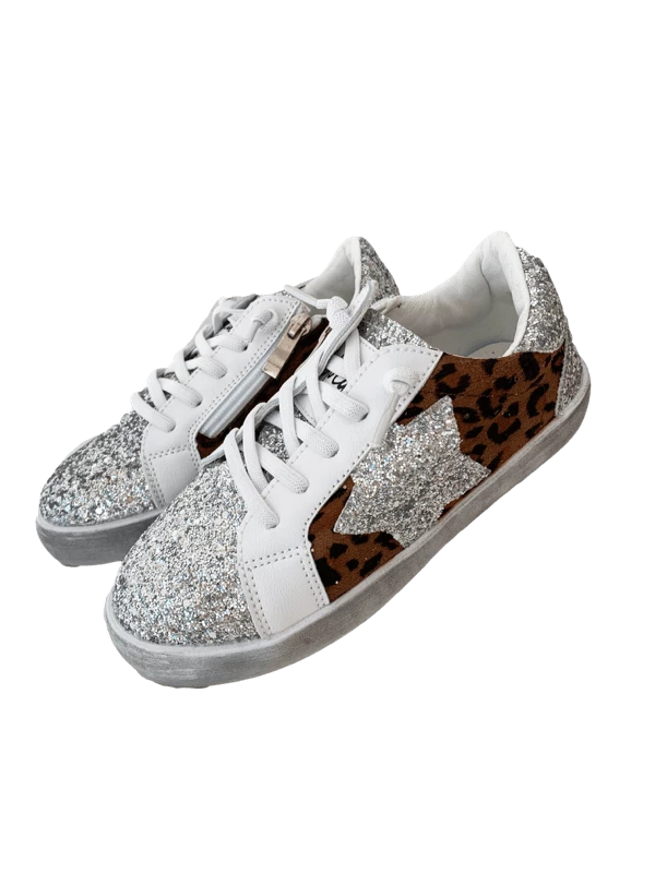 The coolest cat on the block! Cheetah printed low top sneakers with glitter star!Β
