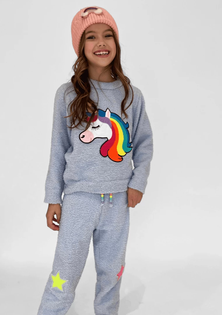 Super soft cozy Material with a cute unicorn appliqué