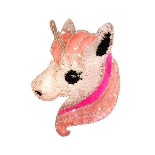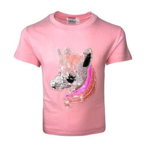 Beaded and sequined unicorn patch on pink tee!ย