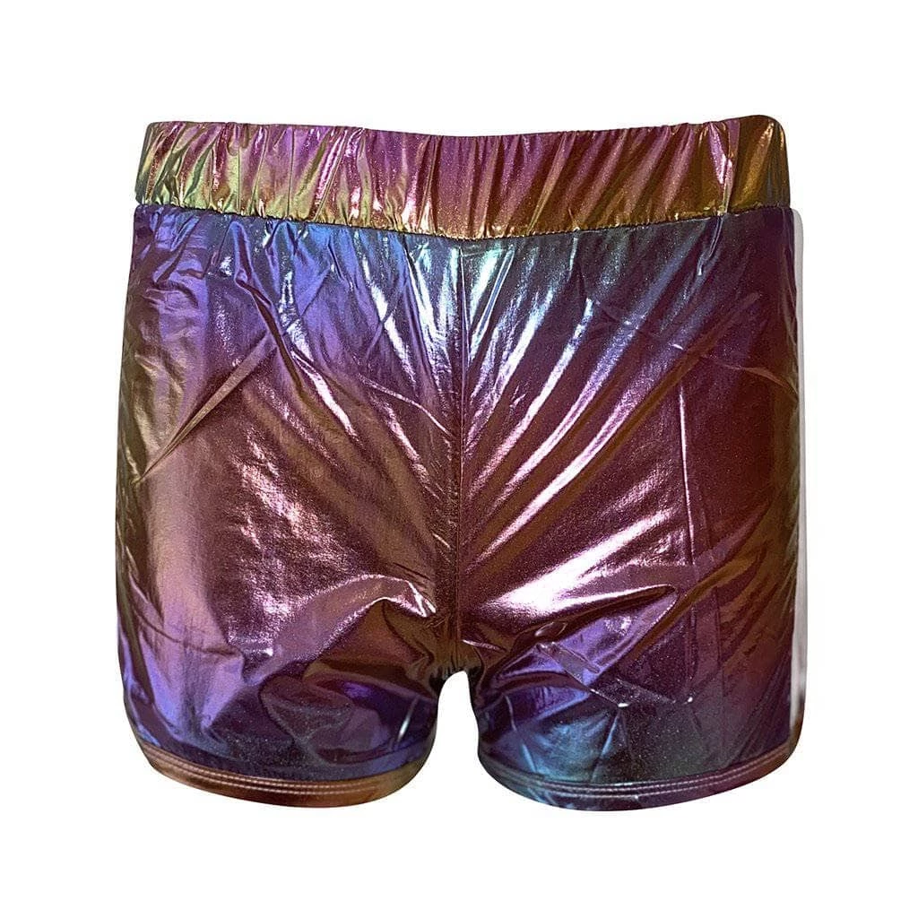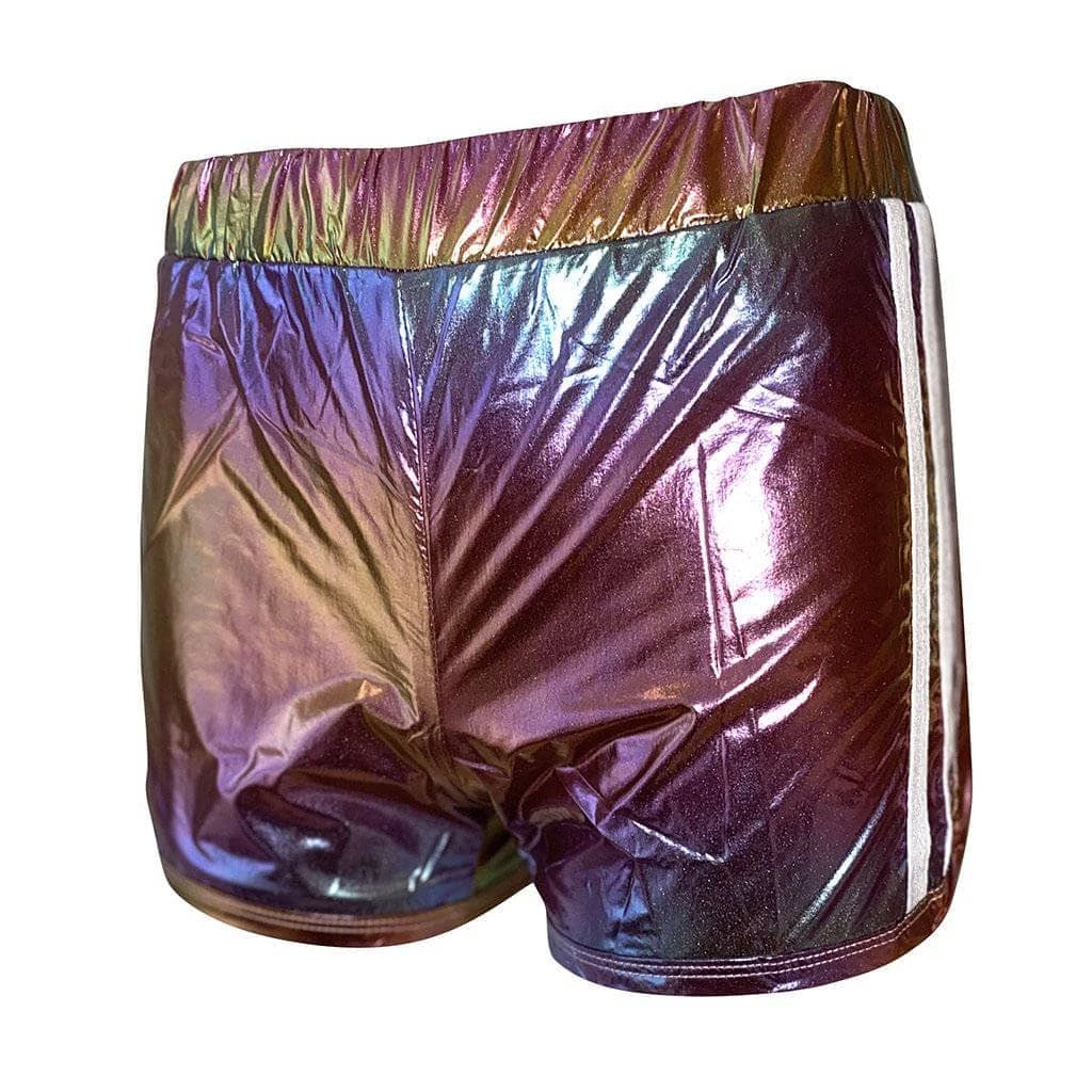 Metallic racer shorts with white stripes on both sides, reflective and thin material!ย