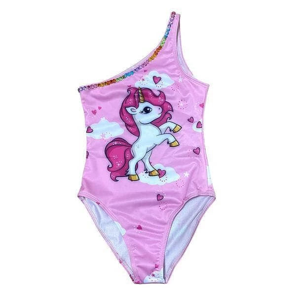 Get summer-ready with this one-shoulder swimwear with a very cute unicorn print in pink.